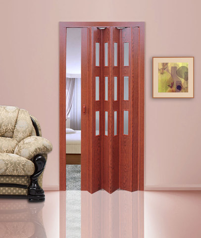 Дверь Гармошка идеально подходит для малогабаритных квартир. Складные двери могут быть выполнены в виде одной или нескольких створок, просты в эксплуатации и уходе. Мы изготавливаем двери гармошка по Вашим размерам. Вы получаете готовый комплект для установки.